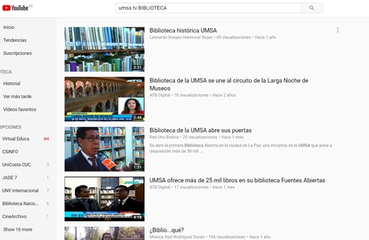 https://www.youtube.com/results?search_query=umsa+tv+BIBLIOTECA